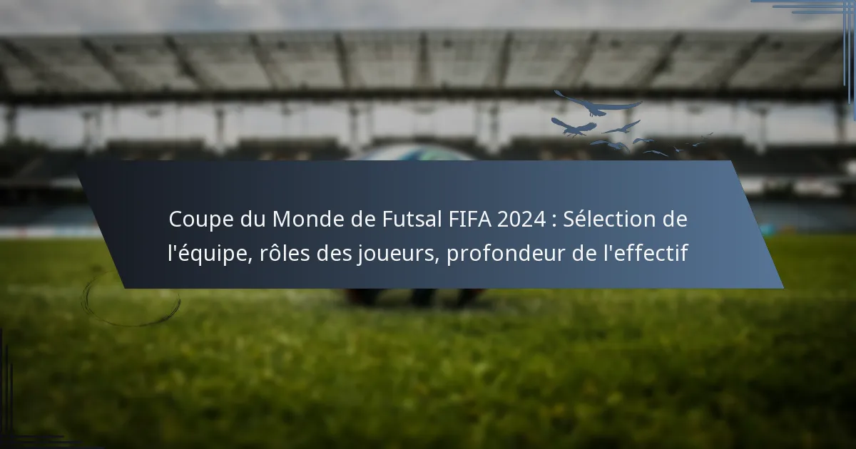 La profondeur de l’effectif influence significativement la performance de l’équipe lors de la Coupe du Monde de Futsal de la FIFA 2024 en offrant une flexibilité tactique et en garantissant que les équipes peuvent faire face aux blessures et à la fatigue. Un effectif bien équilibré permet aux entraîneurs de faire tourner les joueurs efficacement, de maintenir des niveaux d’énergie élevés et d’adapter les stratégies pendant les matches.